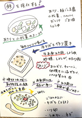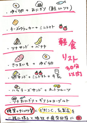 より充実した練習を行い成果を高める事や怪我のリスクを下げる事を目的とし、練習に必要なエネルギー補給や練習後のリカバリー軽食リストを週1回提案しています。